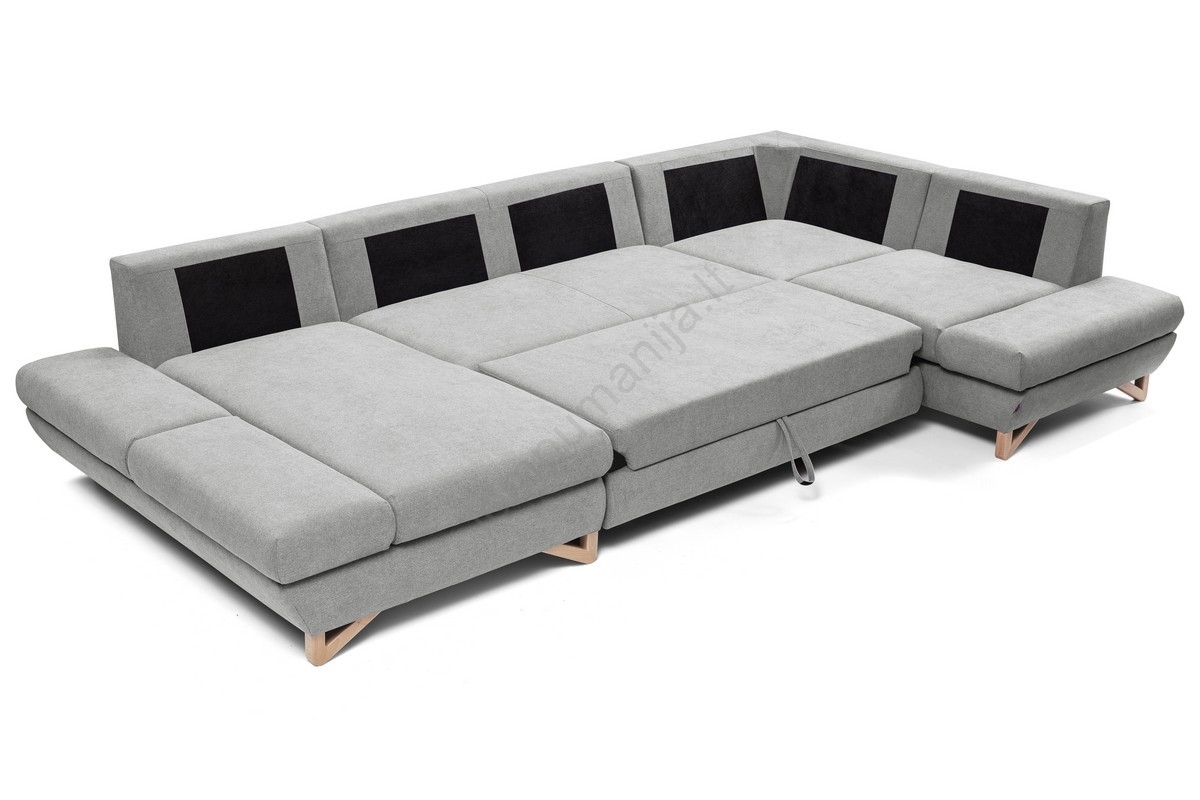 • Išskleidžiama U formos kampinė apmušta sofa su daiktų laikymo vieta AVESTA antracitas