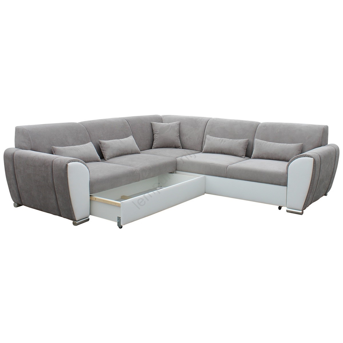 • Išskleidžiama L formos kampinė sofa VISEU su daiktų laikymo vieta, dešinė, pilka/balta