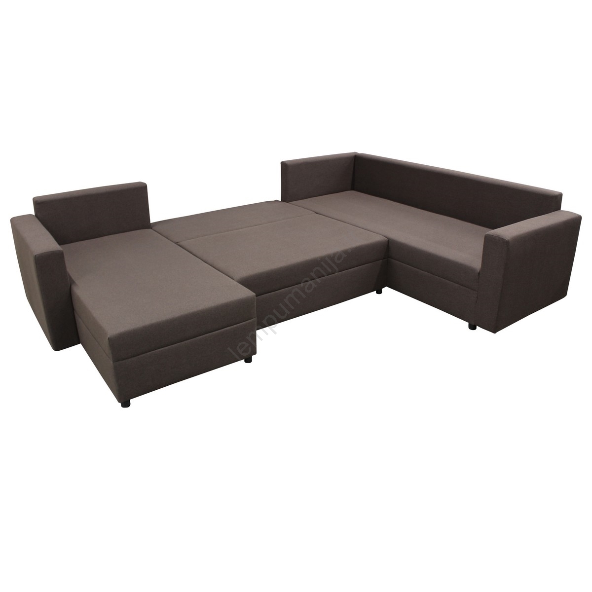 • Universali išskleidžiama U formos kampinė sofa SEYA su talpia daiktų dėže, rudos spalvos