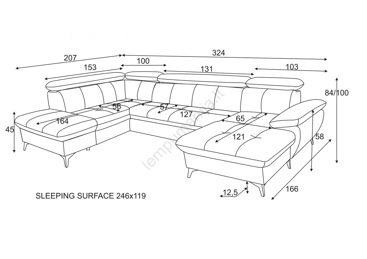 • Sofa suprojektuota su 100 cm aukščio atlošu, kuris puikiai palaiko nugarą ir galvą.