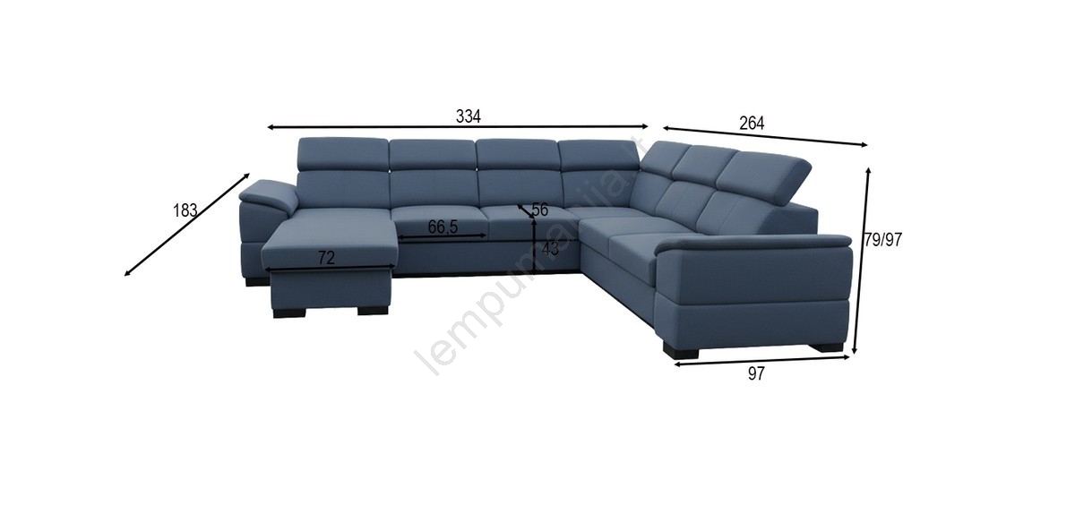 • Išskleidžiama U formos kampinė sofa-lova su universaliu kampu ir daiktų laikymo vieta GRANADA, mėlyna