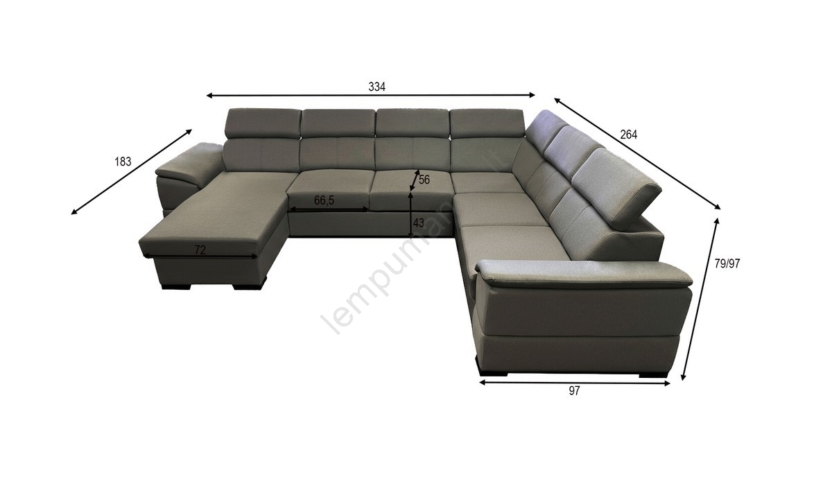 • Sofa siūlo 7 reguliuojamas galvos atramas su 5 padėtimis.