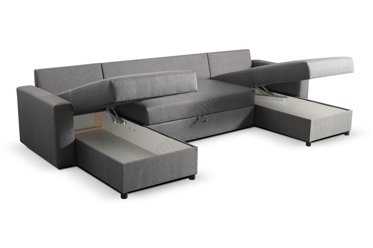 Išskleidžiama U formos kampinė sofa-lova JANISE su sandėliavimo skyriumi, pilka