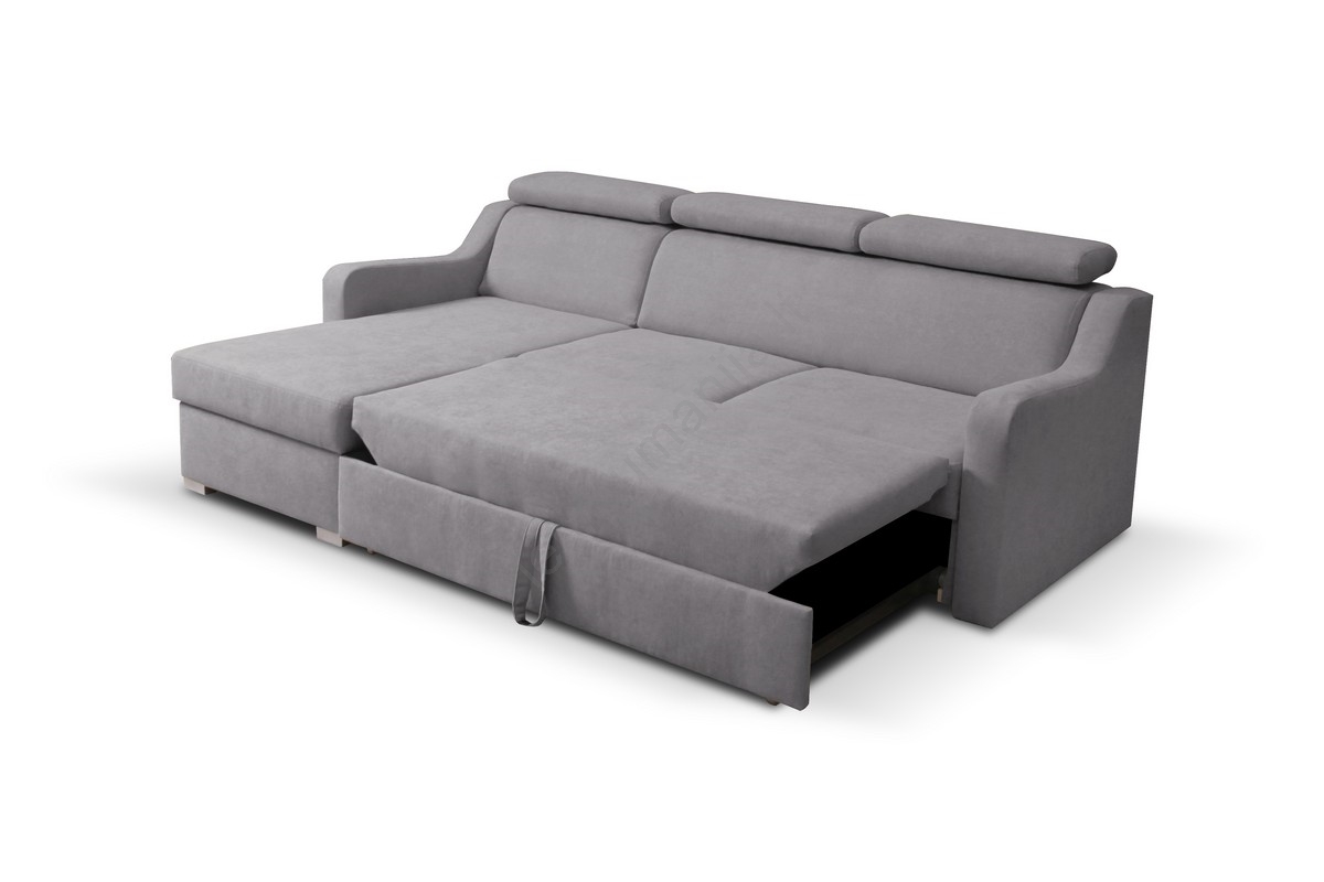 • Universali išskleidžiama kampinė sofa su daiktadėže PORTO pilka