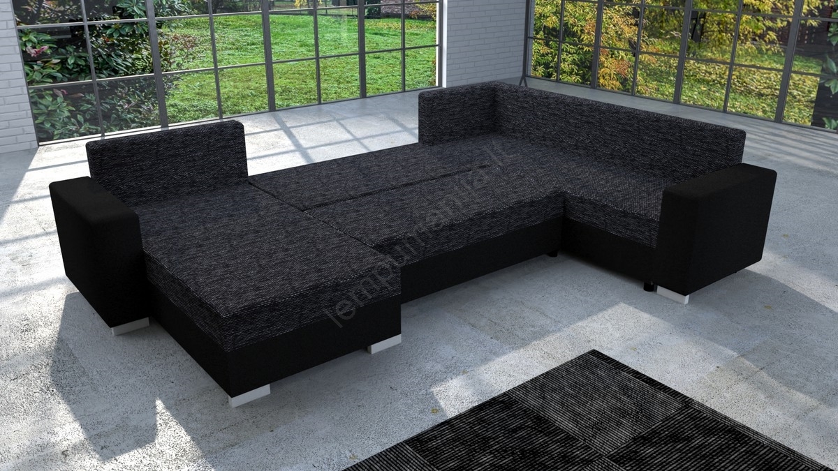 • Apmušta universali U formos išskleidžiama sofa YORK juoda/antracitas