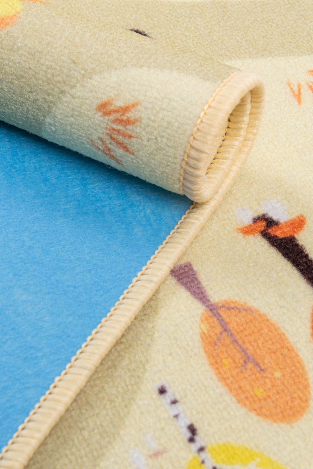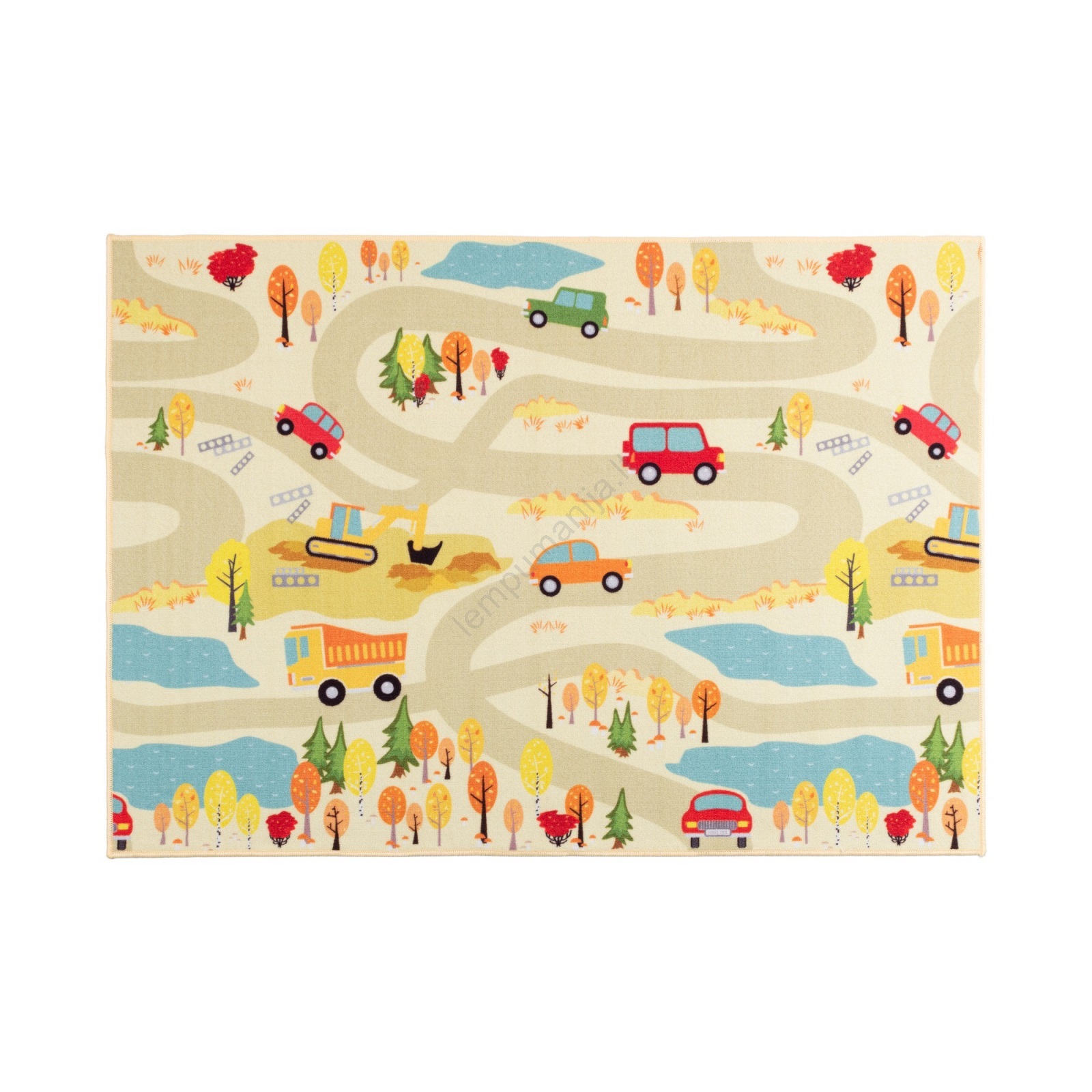 • Spalvotas vaikiškas kilimas su miesto motyvais.