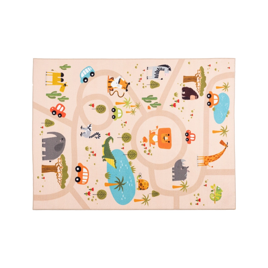 • Spalvingas vaikiškas kilimas su safari raštu.