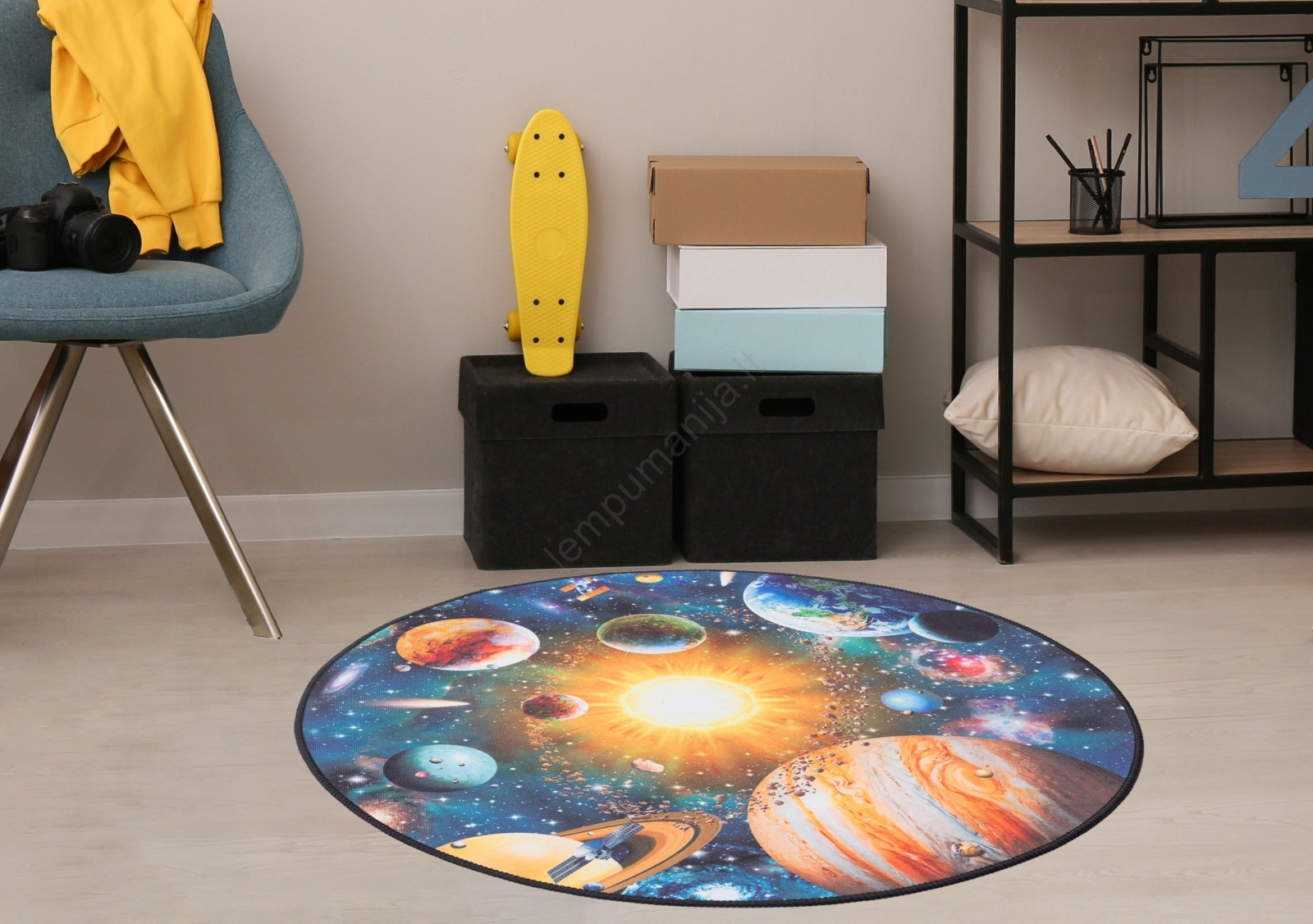 • Spalvingas vaikiškas kilimas su planetų motyvu.
