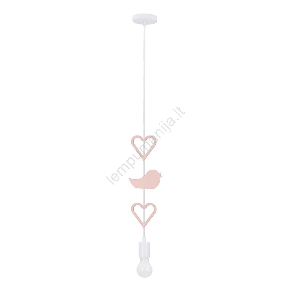 Vaikiškas pakabinamas šviestuvas HEART ant laido 1xE27/20W/230V rožinė/balta | Lempumanija