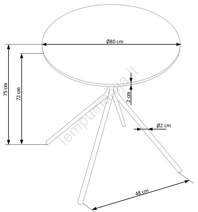 • 80 cm skersmens stalviršis suteikia pakankamai vietos patogiam valgymui arba darbui.
