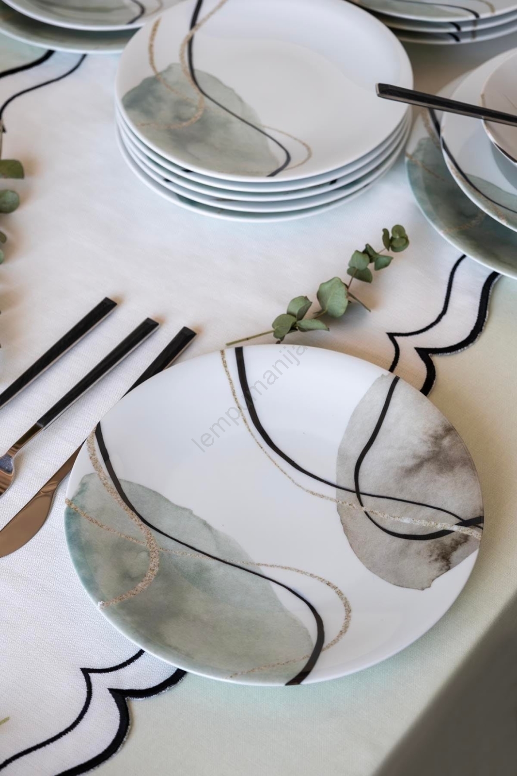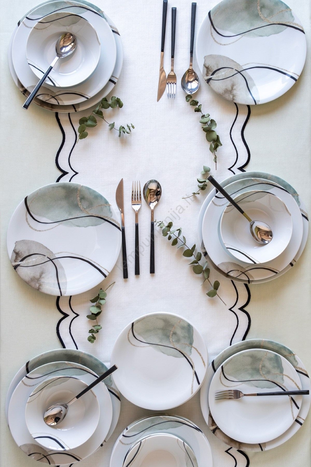 Valgomojo indų rinkinys, 24 dalių, pilkos/žalios spalvos, porcelianas | Lempumanija