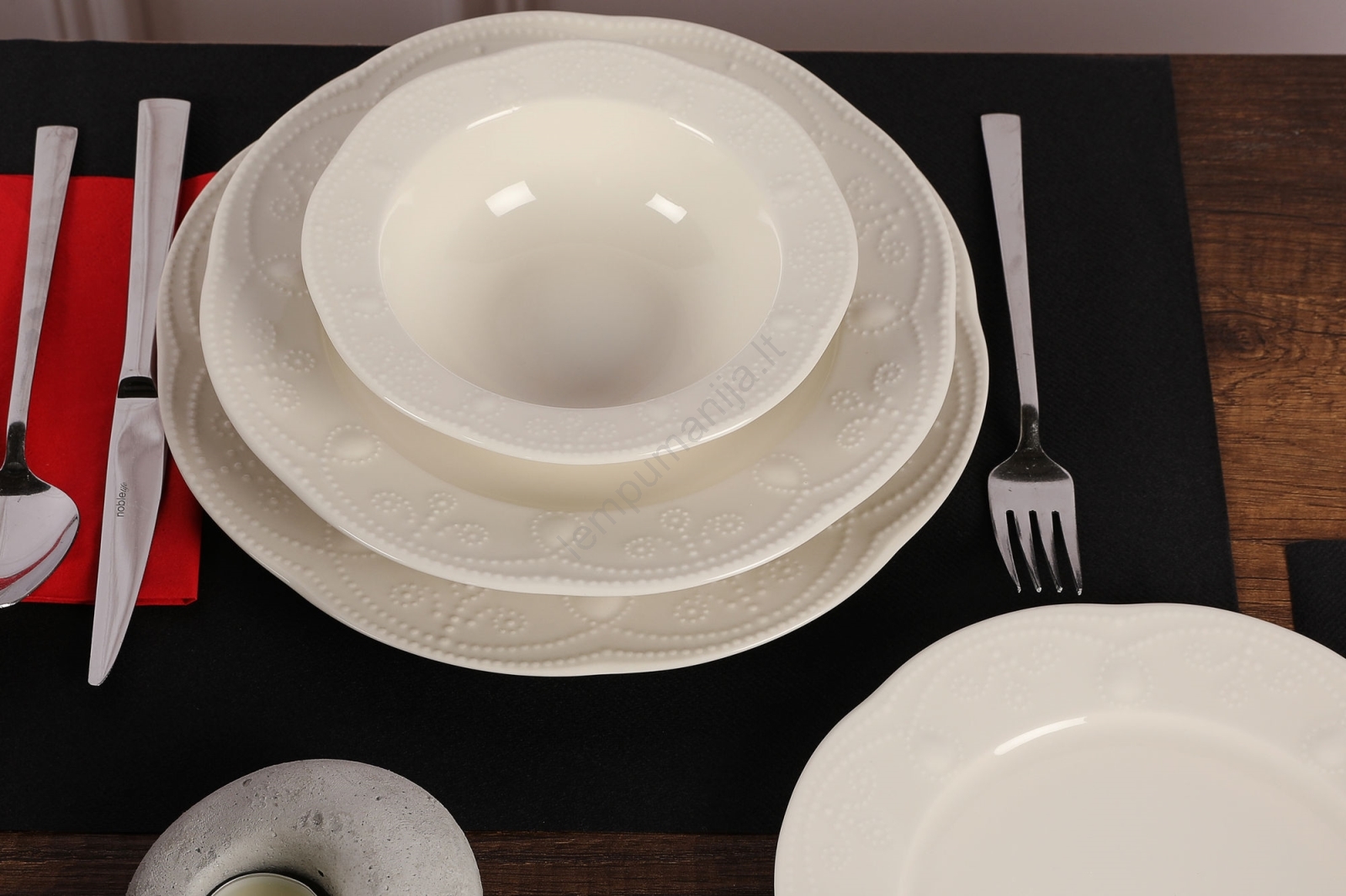 Valgomojo indų rinkinys 24 vnt. baltas/porcelianas | Lempumanija