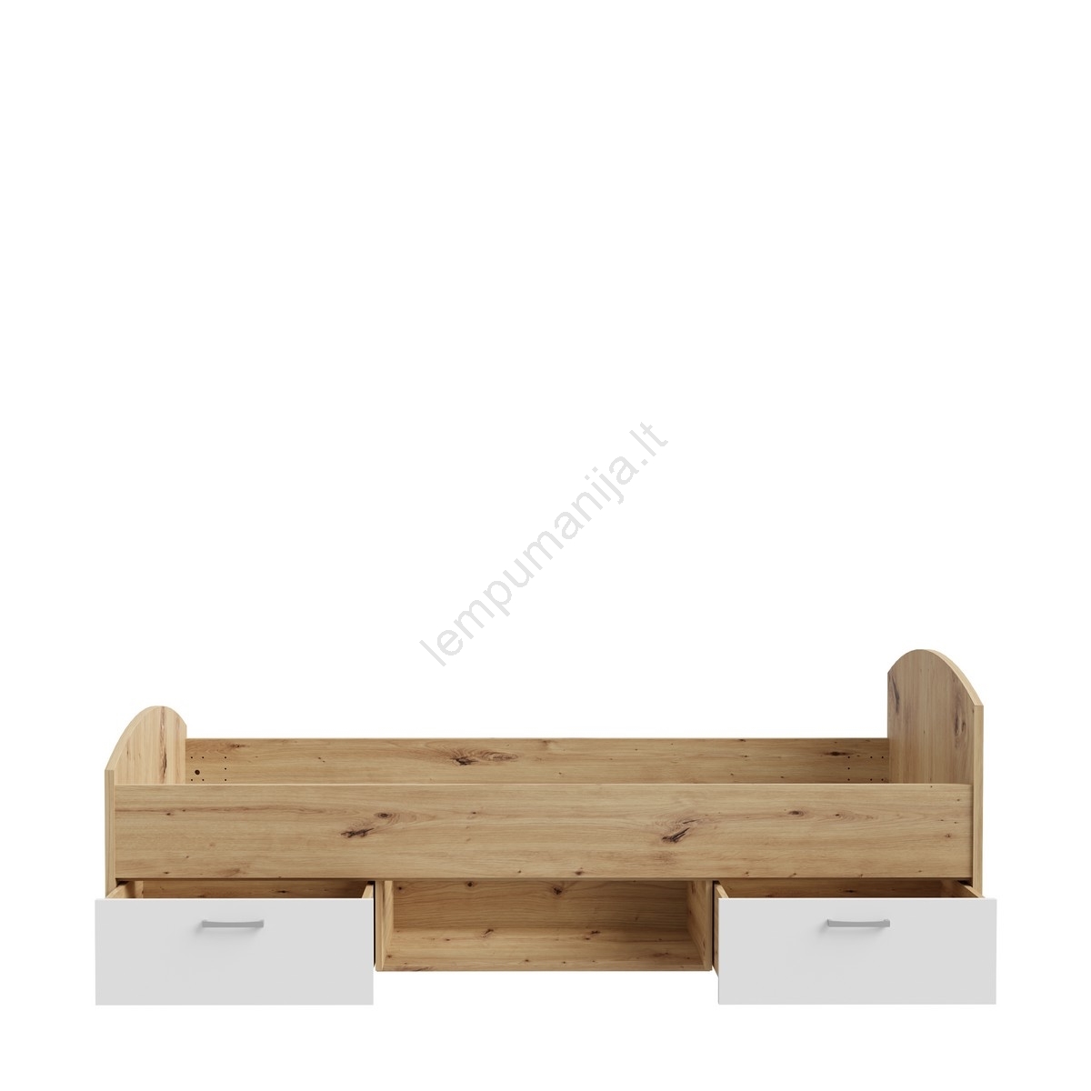 Viengulė lova su patalynės dėže URO 90x200 cm ąžuolas artisan/balta | Lempumanija