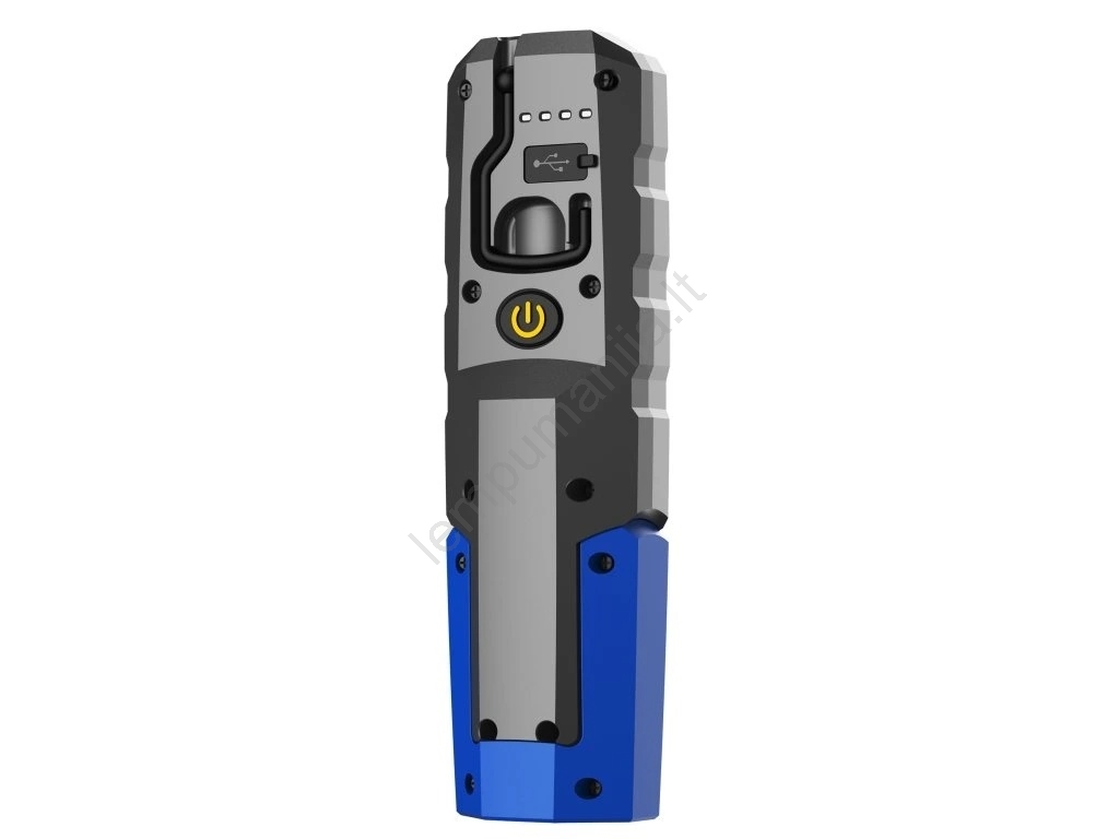 • Viršuje rasite kabliuką pakabinimui, apačioje magnetą pritvirtinimui prie metalinių paviršių ir lankstų laikiklį, leidžiantį pakreipti žibintą į pageidaujamą kampą.
