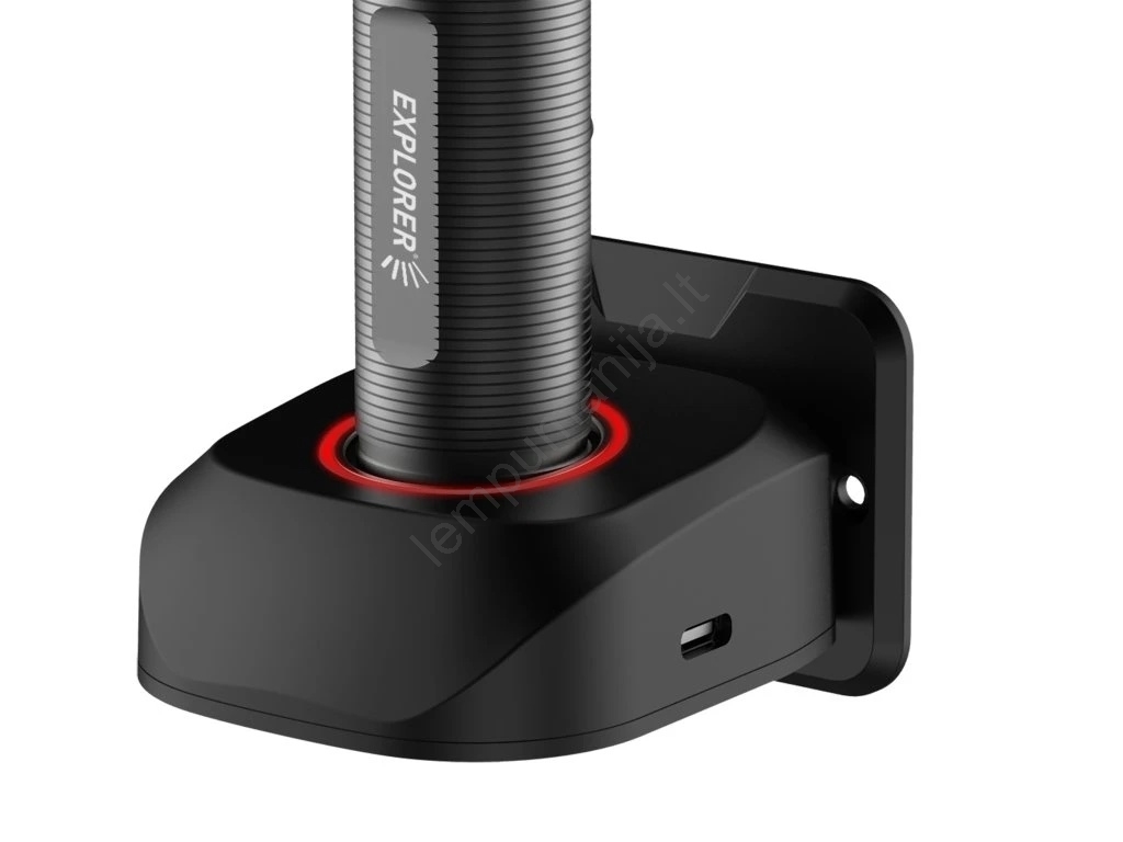 • Įkrovimas per komplekte esančią USB-C dokinimo stotį, leidžiančią patogiai padėti ir įkrauti žibintuvėlį.