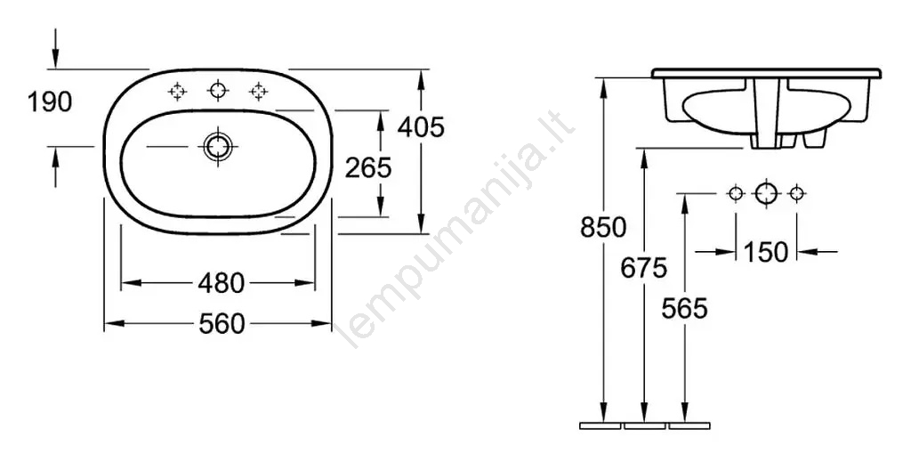Villeroy & Boch 41615601 - Įmontuojamas praustuvas O.NOVO 56x40,5 cm keramika/balta | Lempumanija