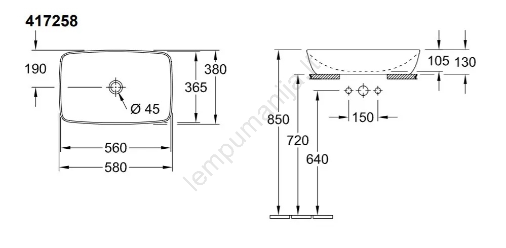 • Villeroy & Boch 41725801 - Ant stalviršio montuojamas praustuvas ARTIS 58x38,5 cm keramika/balta