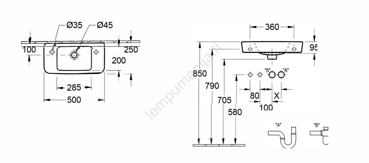 • Maišytuvas ir praustuvo išleidimo dalis nėra komplekte.