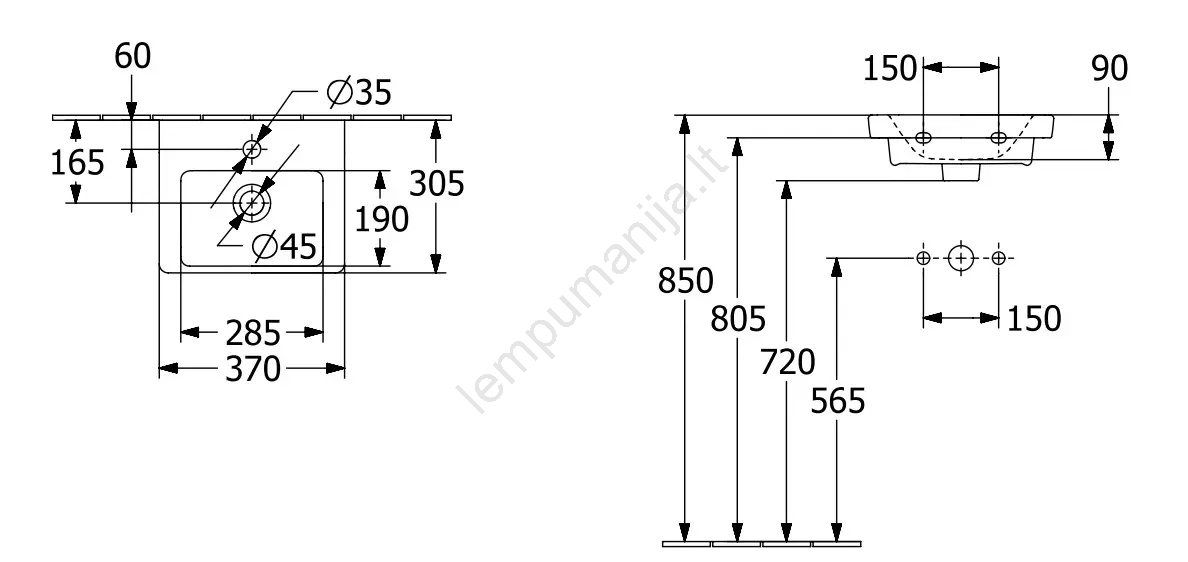 Villeroy & Boch 43703701 - Pakabinamas praustuvas SUBWAY 37x30,5 cm keramika/balta | Lempumanija