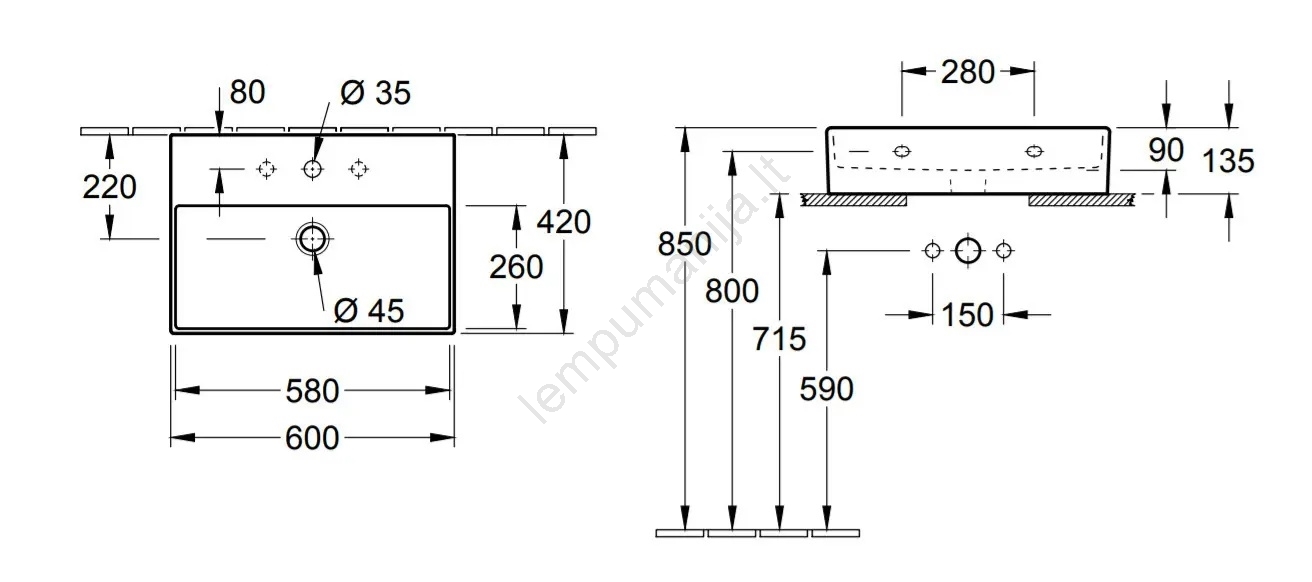 Villeroy & Boch 4A226G01 - Pakabinamas praustuvas MEMENTO 60x42 cm keramika/balta | Lempumanija