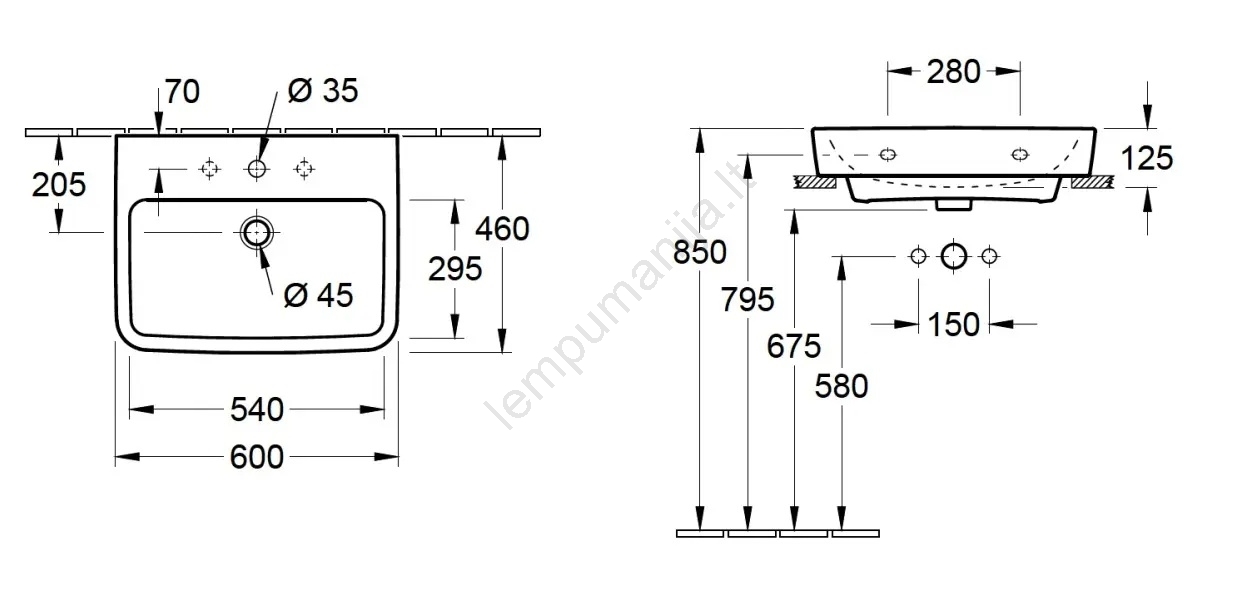 Villeroy & Boch 4A416G01 - Pakabinamas praustuvas O.NOVO 60x46 cm keramika/balta | Lempumanija
