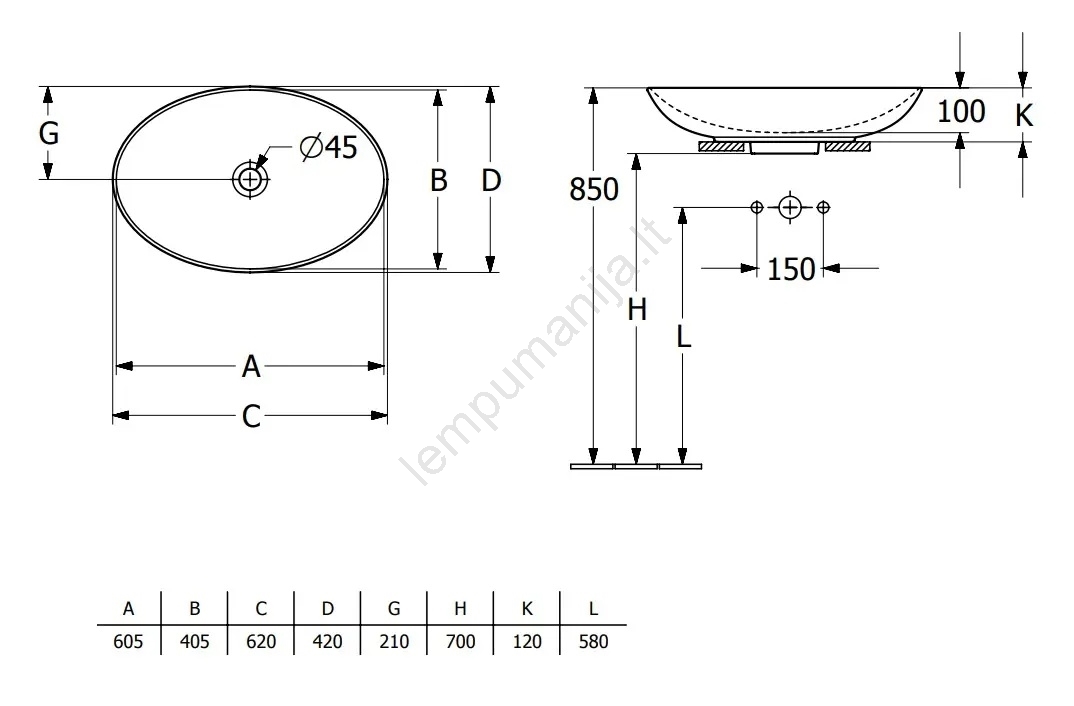 Villeroy & Boch 4A480001 - Praustuvas ant stalviršio LOOP&FRIENDS 62x42 cm keramika/balta | Lempuman