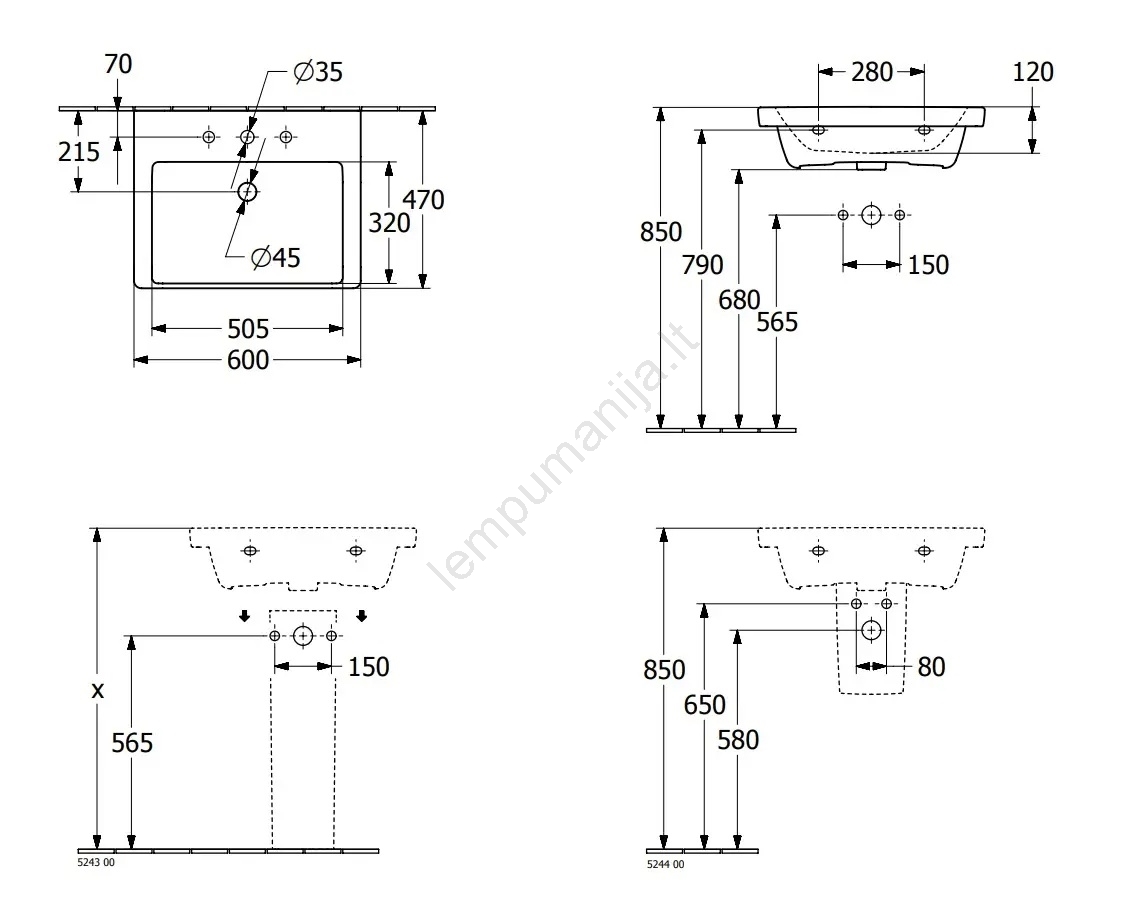 Villeroy & Boch 4A706001 - Pakabinamas praustuvas SUBWAY 3.0 60x47 cm keramika/balta | Lempumanija