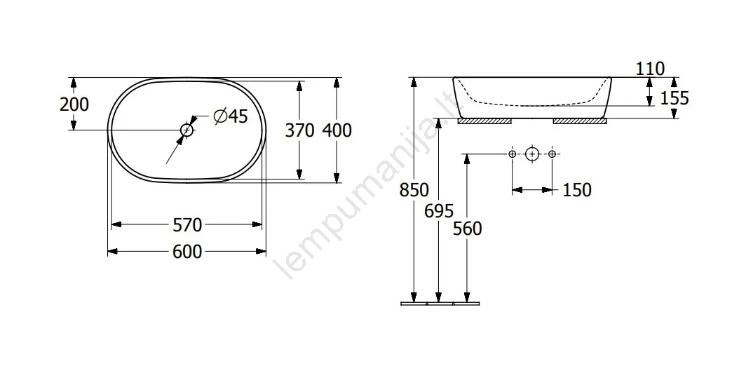 Villeroy & Boch 5A266001 - Praustuvas ant stalviršio ARCHITECTURA 60x40 cm keramika/balta | Lempuman