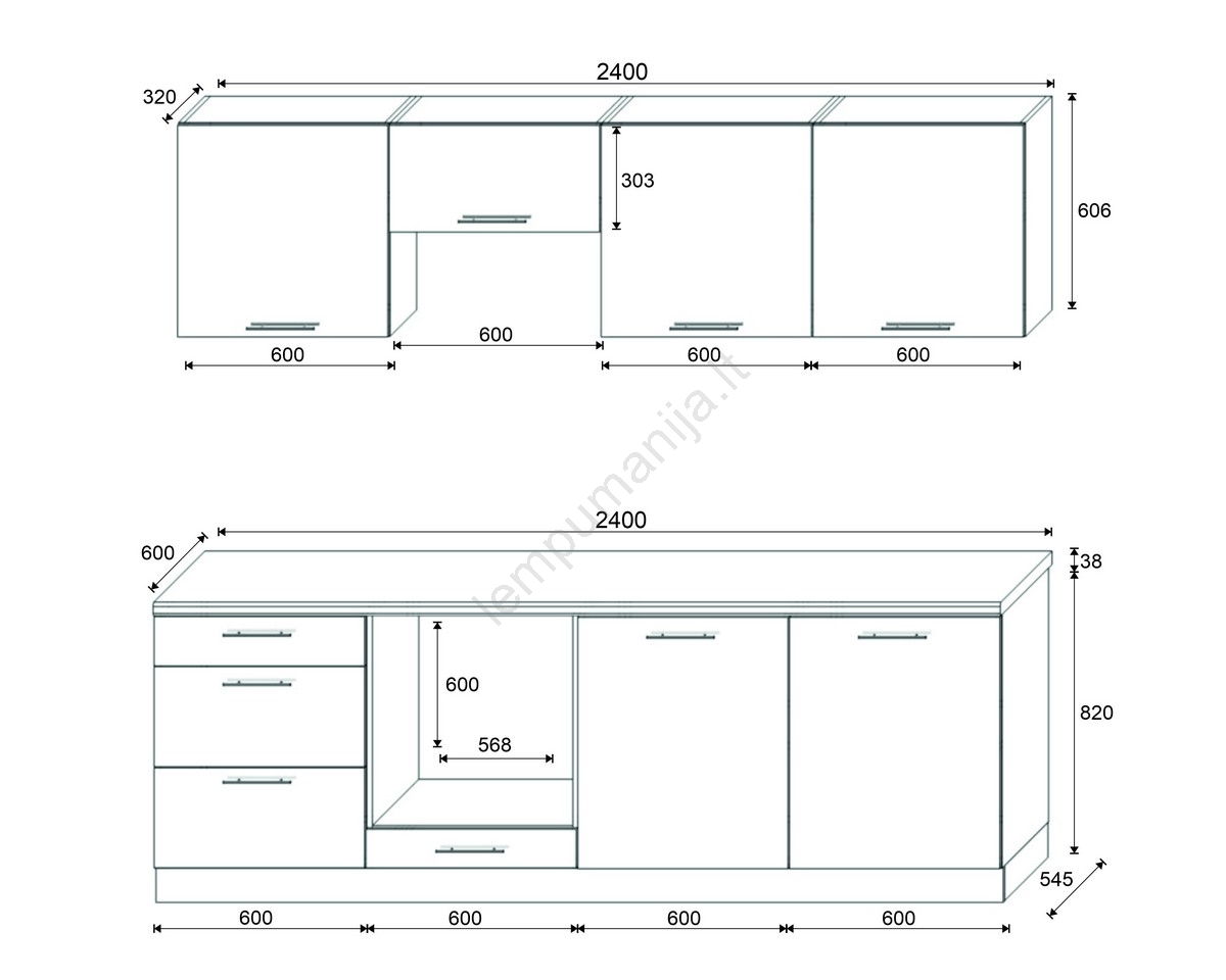 • Spintelių išdėstymas yra modulinis, virtuvę galite pritaikyti pagal savo pageidavimus.