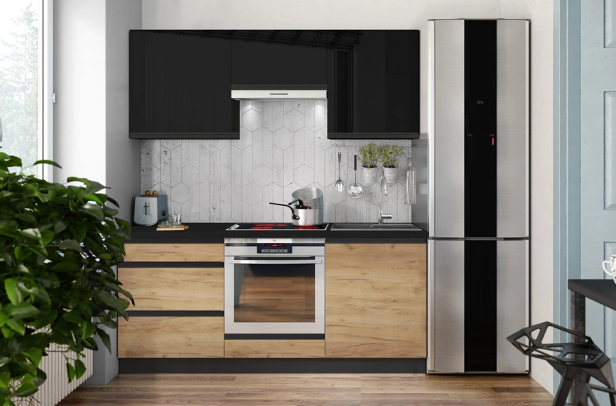 Virtuvinė spintelė MARINA 180 cm ąžuolas craft / blizgi juoda | Lempumanija