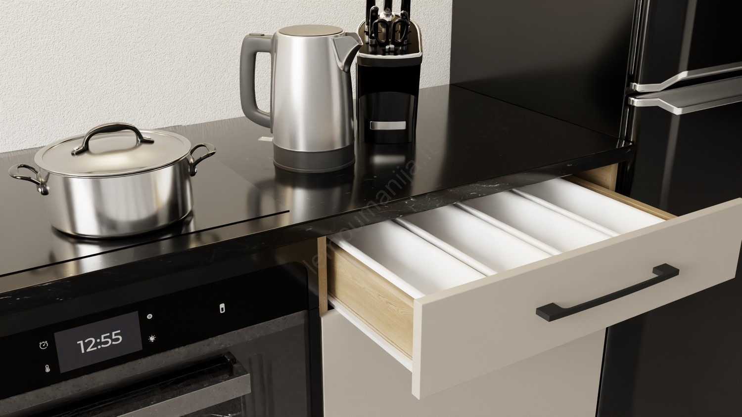 • Funkcionalus virtuvės komplektas suteikia erdvų, gerai suskirstytą saugojimo sprendimą.