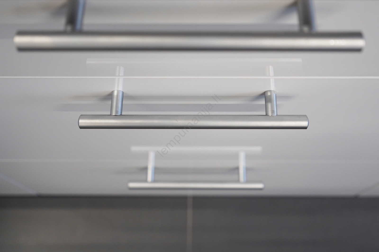 • Viršutinių spintelių ir apatinės spintelės priekiai yra blizgaus paviršiaus.