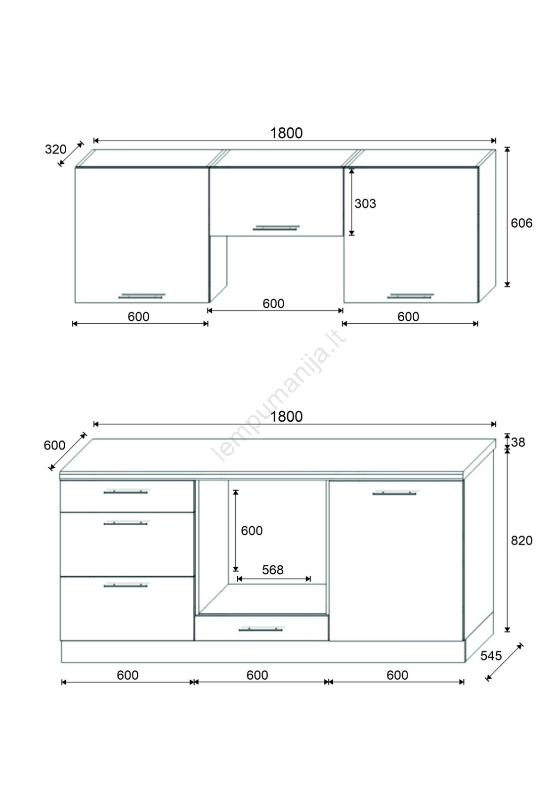 • Spintelių išdėstymas yra modulinis, virtuvę galite pritaikyti pagal savo poreikius.
