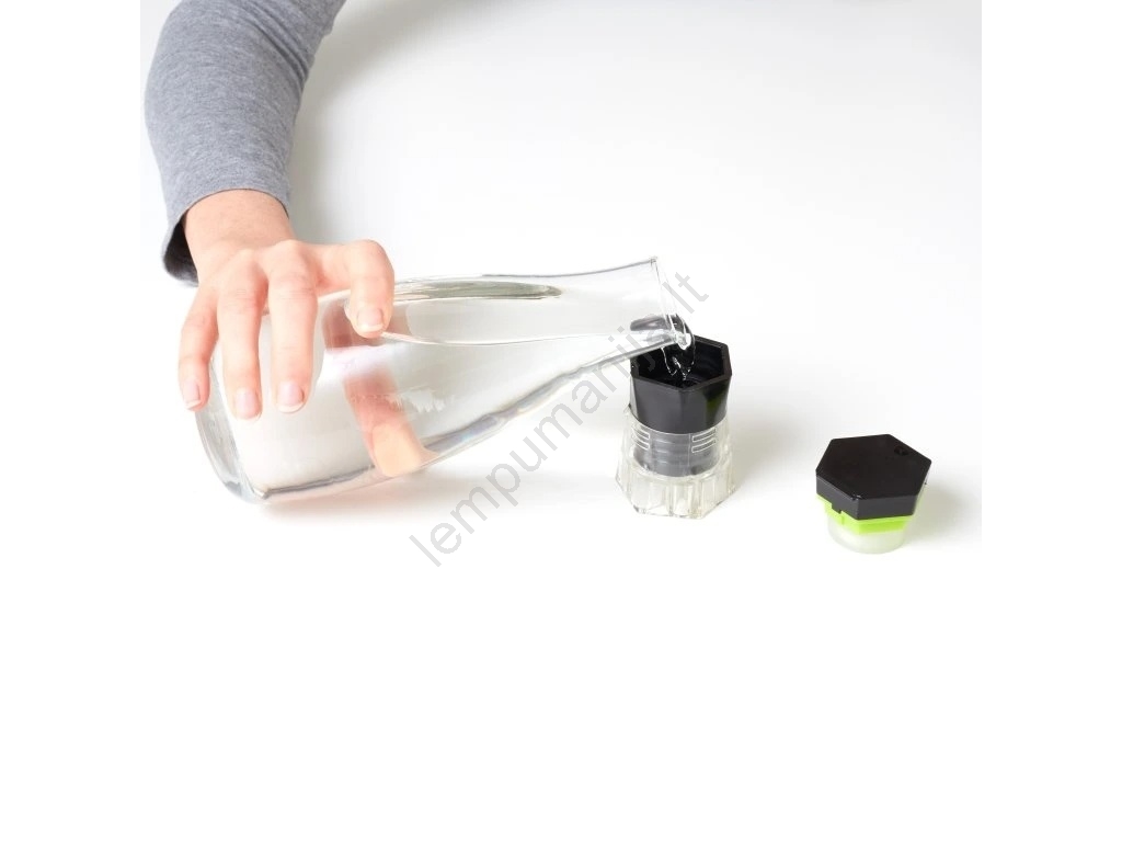 • Dozatorius yra permatomas, su juodais ir žaliais akcentais, ir puikiai palengvina medikamentų tvarkymą.