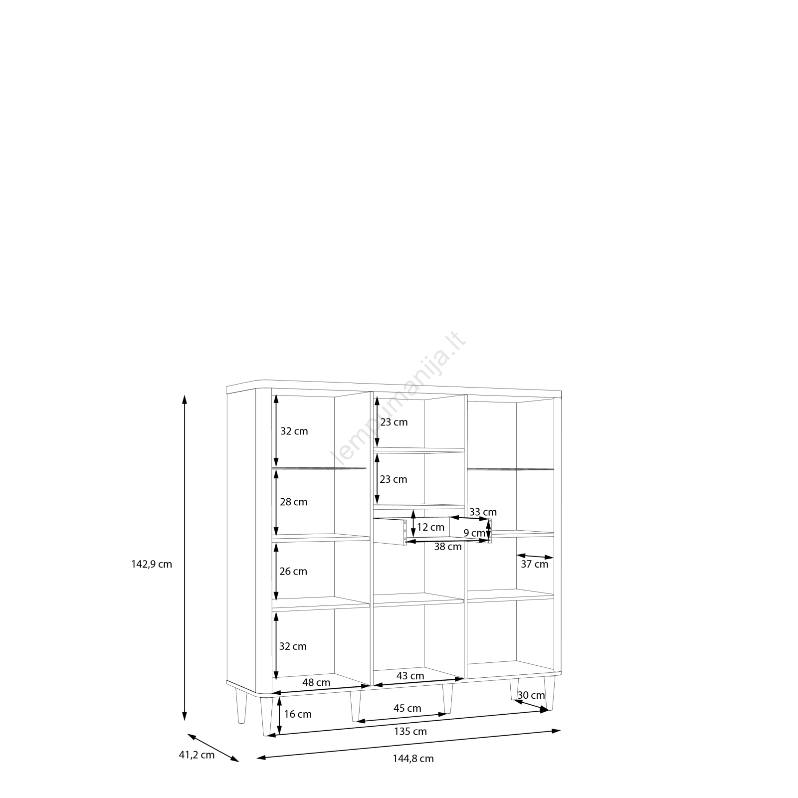 • Viršutinė plokštė yra pakankamai erdvi dekoracijoms, elektronikai ar kitiems būtiniems daiktams laikyti.