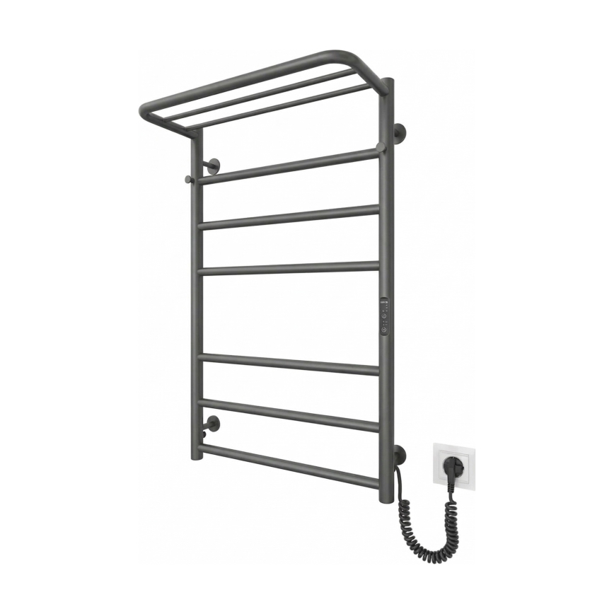 Vonios kopėčių tipo rankšluosčių radiatorius HOME 95W/230V 77x53 cm nerūdijančio plieno/antracitas, dešinės pusės