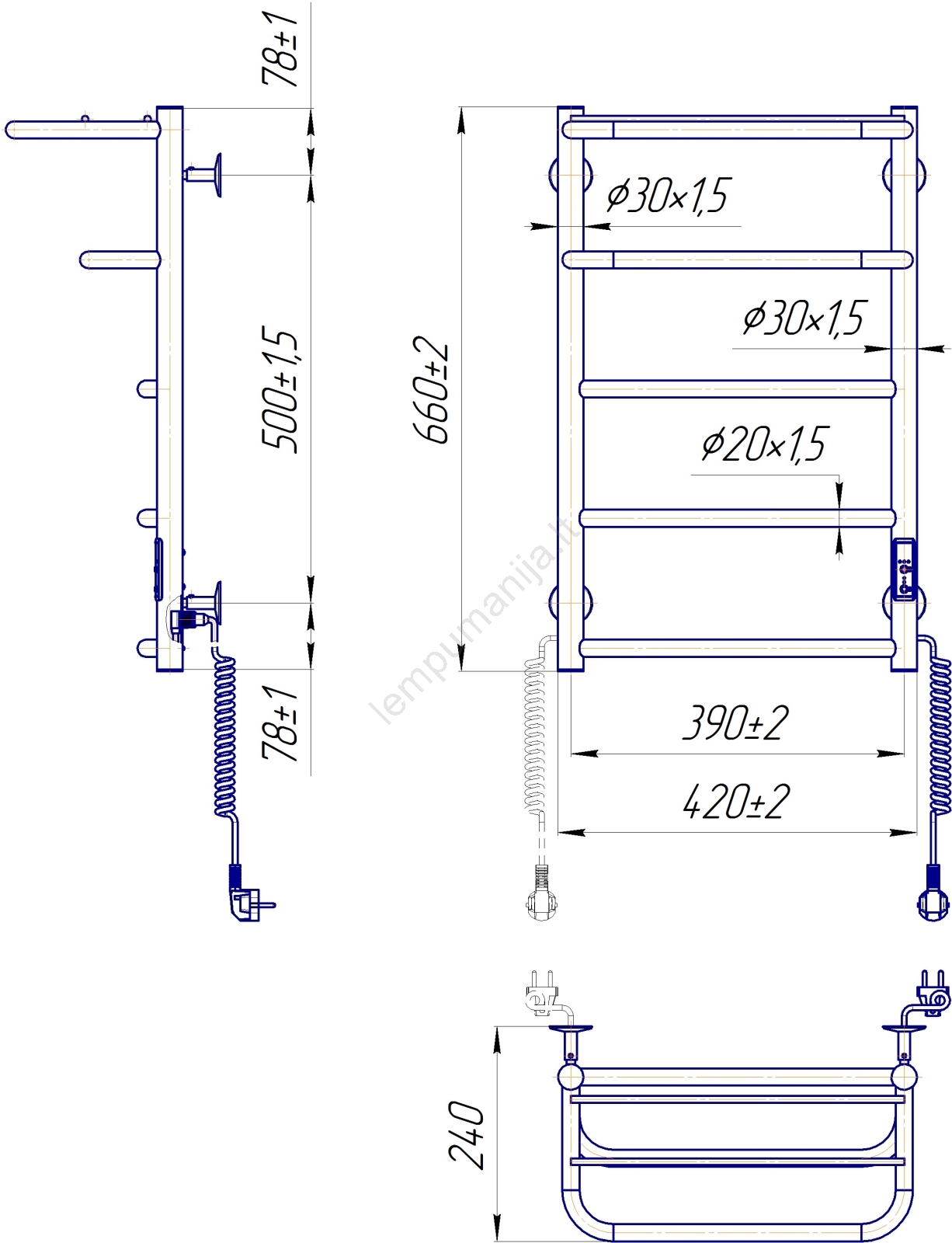Vonios rankšluosčių radiatorius HOTEL 75W/230V 65x43 cm nerūdijančio plieno/baltas dešinysis