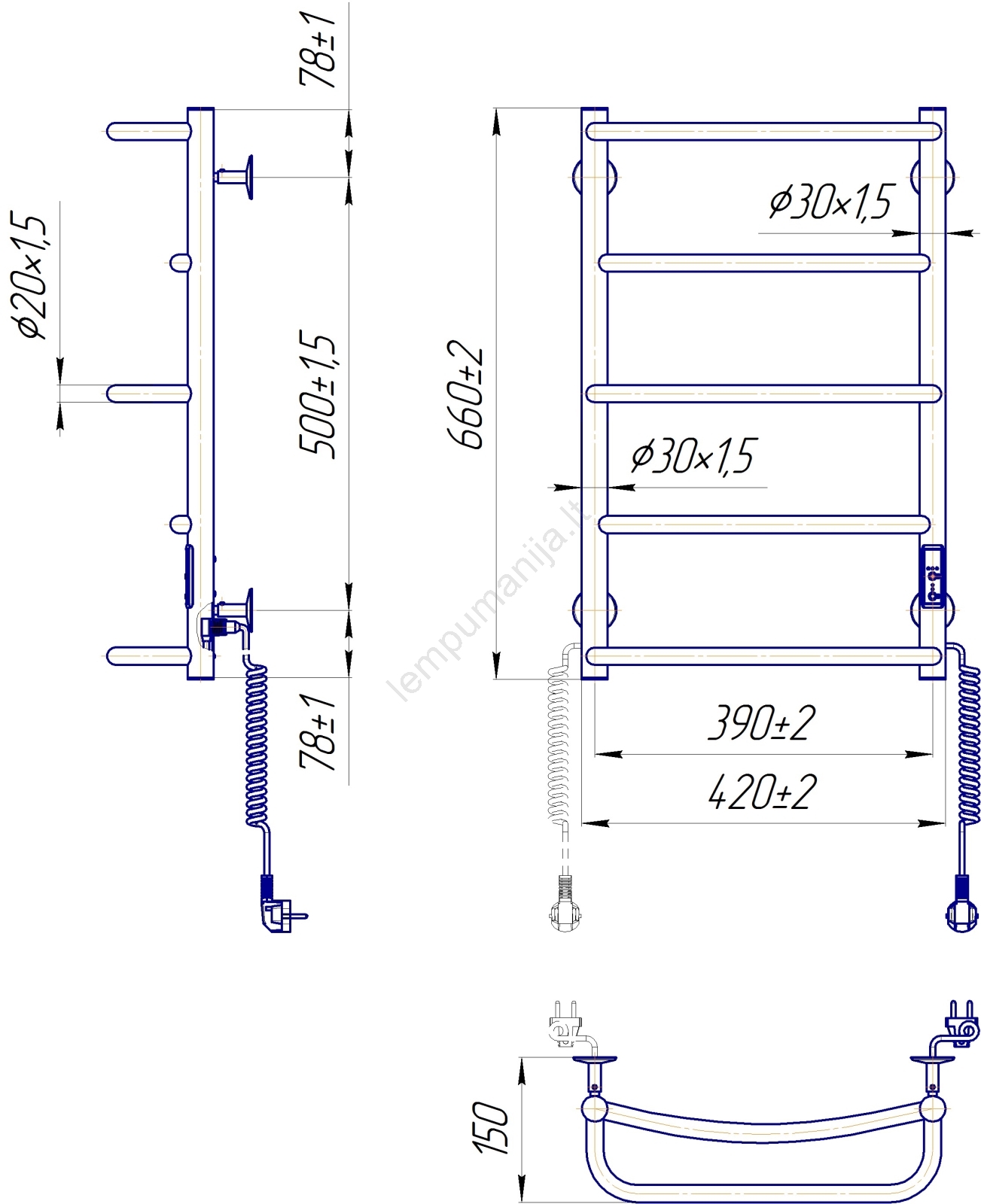 • Elektrinis vonios rankšluosčių radiatorius (kopėčių tipas), tinkamas rankšluosčių džiovinimui ir vonios kambario papildomam šildymui.