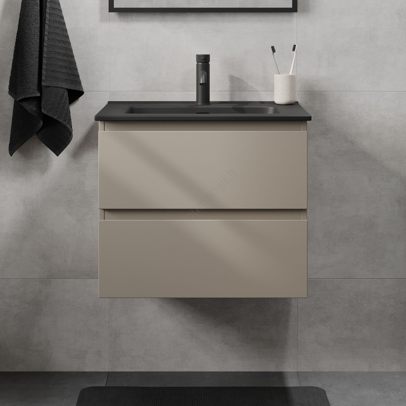 • Elegantiška juoda vonios spintelė su praustuvu CONOR, 61 cm