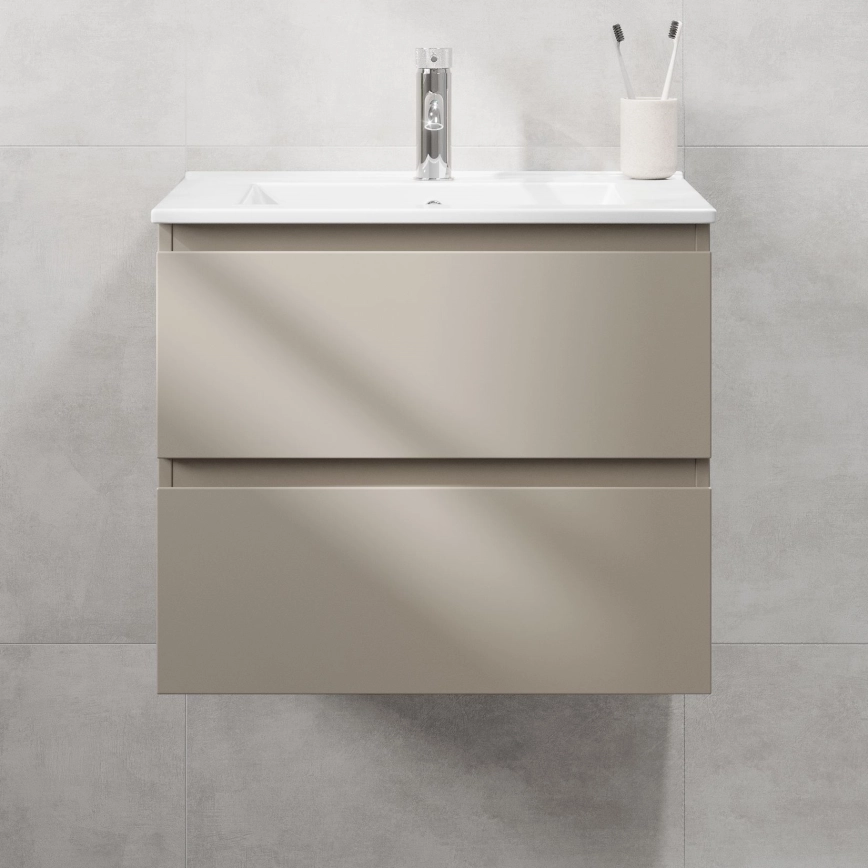• Norėdami užbaigti bendrą vaizdą, rekomenduojame derančią aukštą spintelę – ji suteiks papildomos vietos ir pabrėš vientisą stilių.