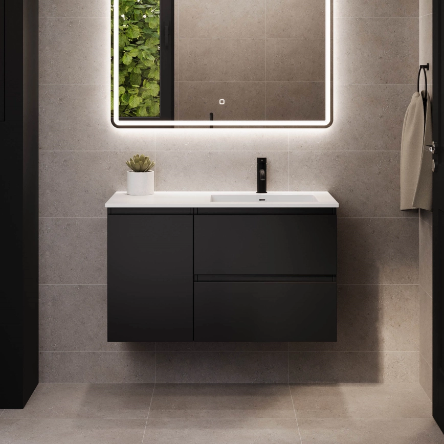 • Vonios spintelė su praustuvu HELSINKI 95 cm dešinė/juoda