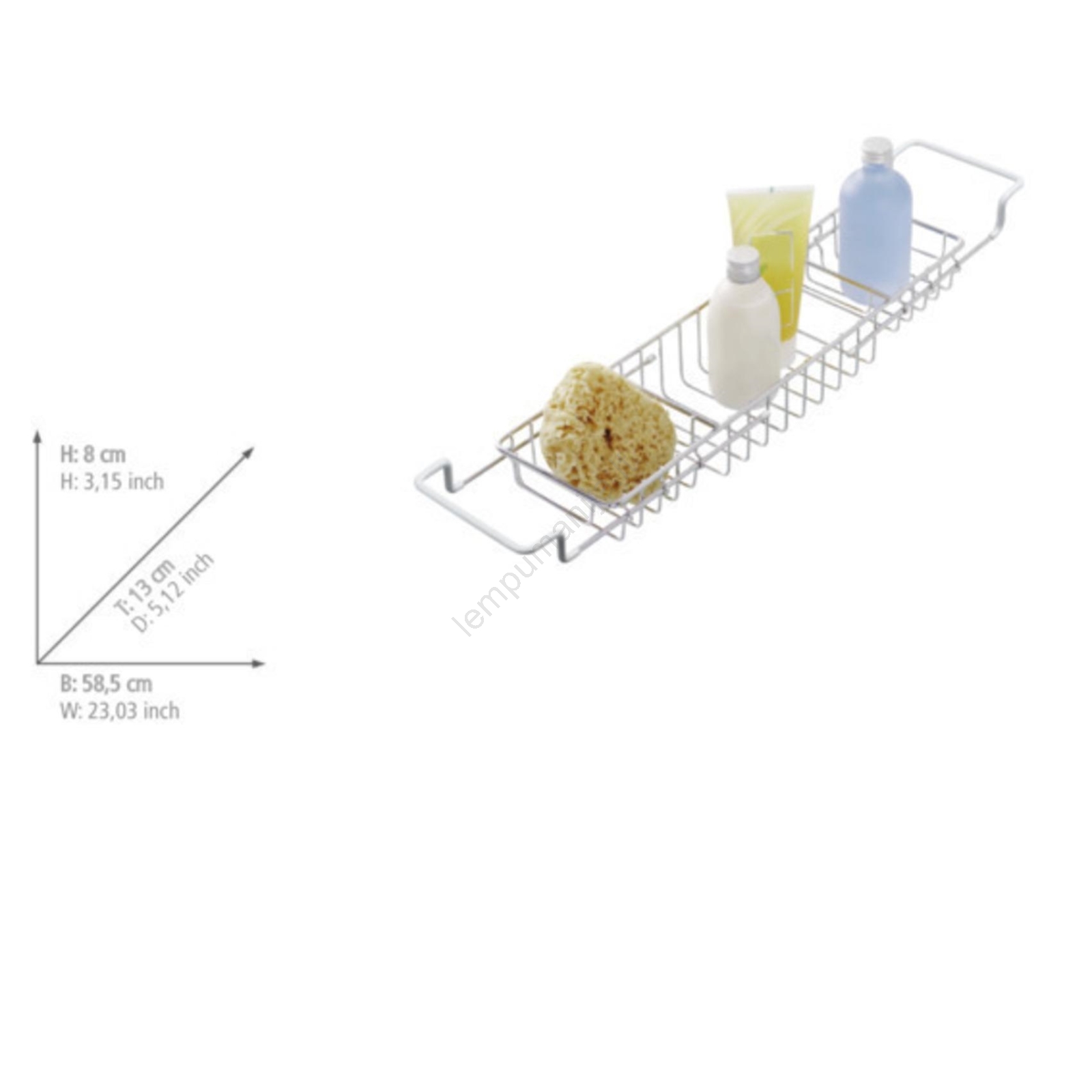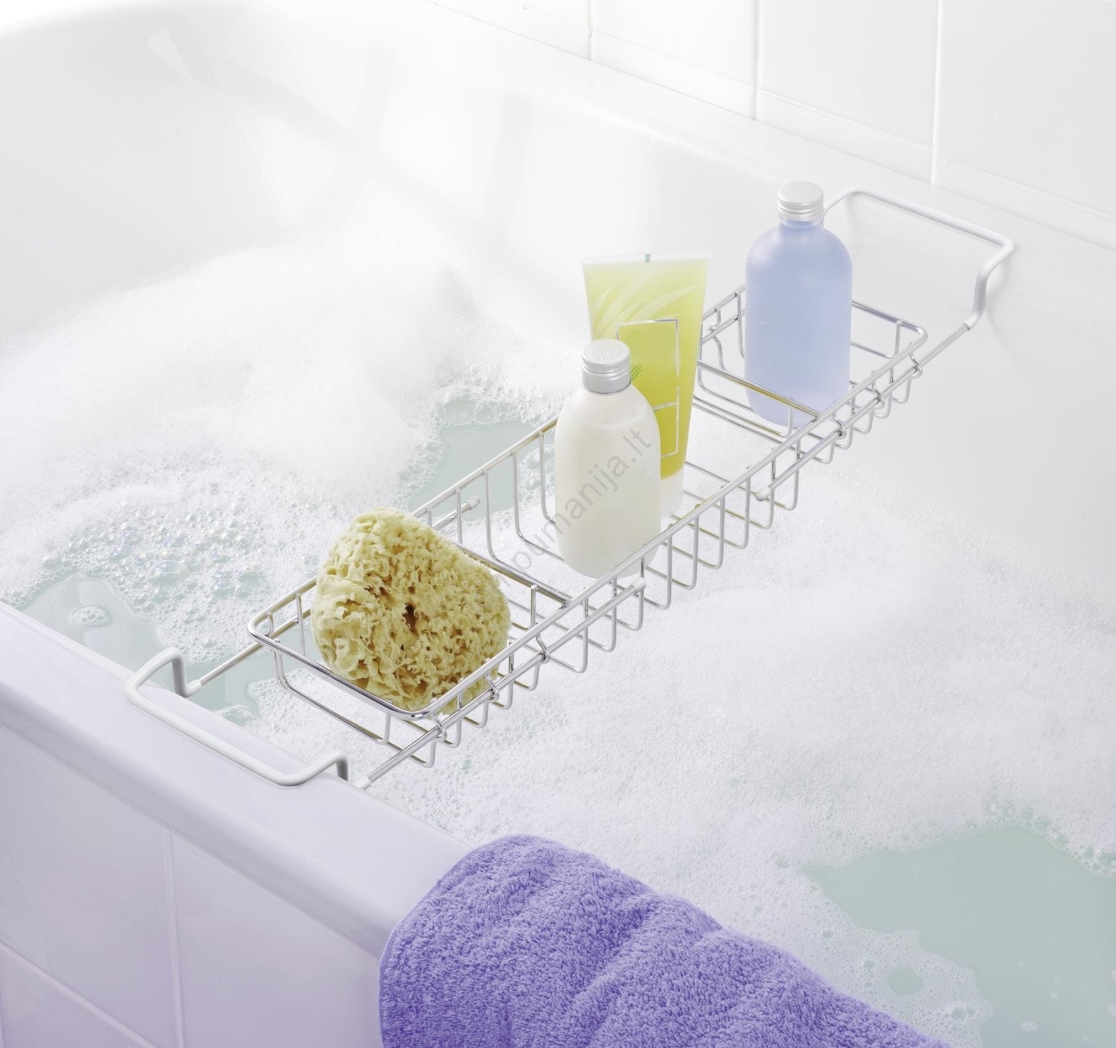 • Teikia praktišką vietą šampūnui, dušo geliui, muilui ir kempinėlei.