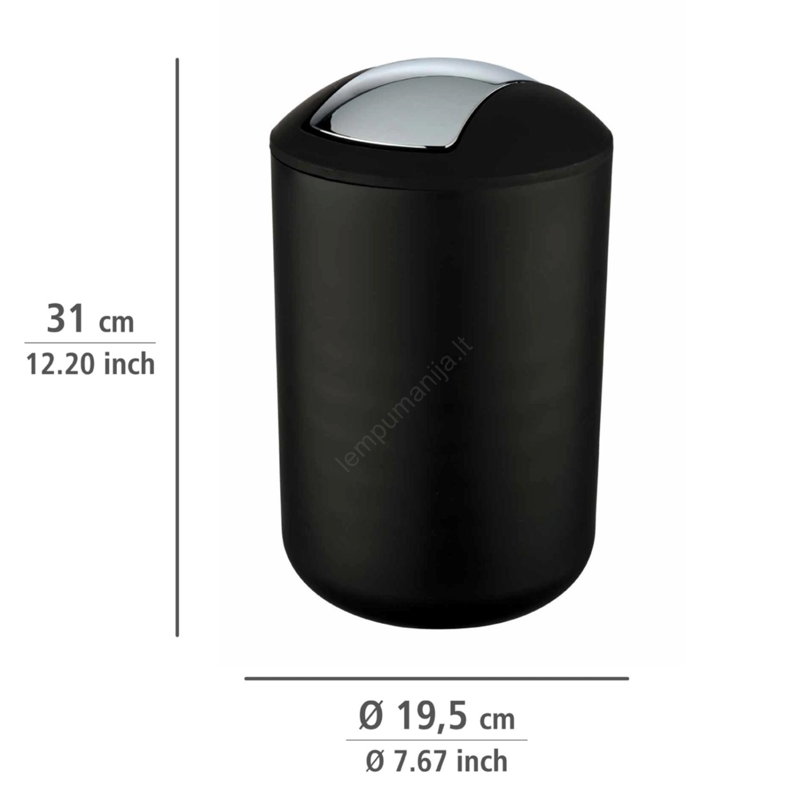 WENKO 21212100 - Šiukšliadėžė BRASIL 19,5x31 cm juoda/blizgus chromas | Lempumanija