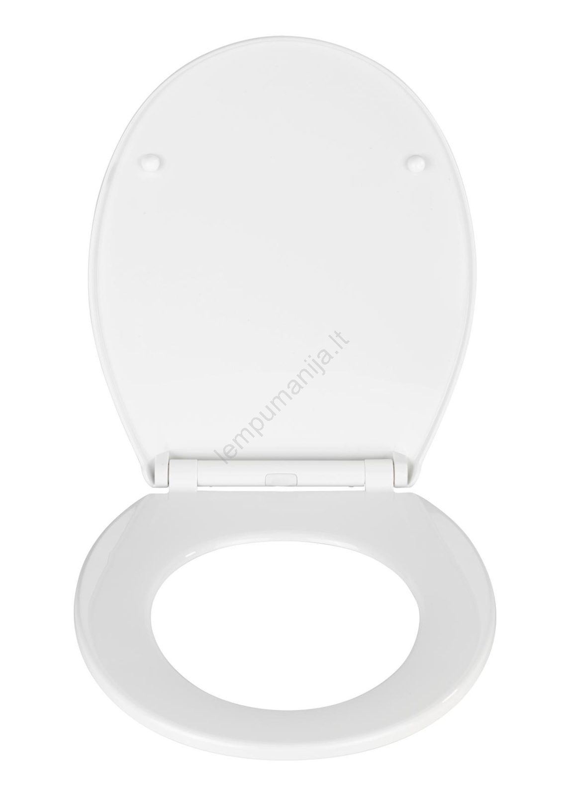 • Aukštos klasės tualeto sėdynė iš patvaraus termoplasto, klasikinio balto dizaino.