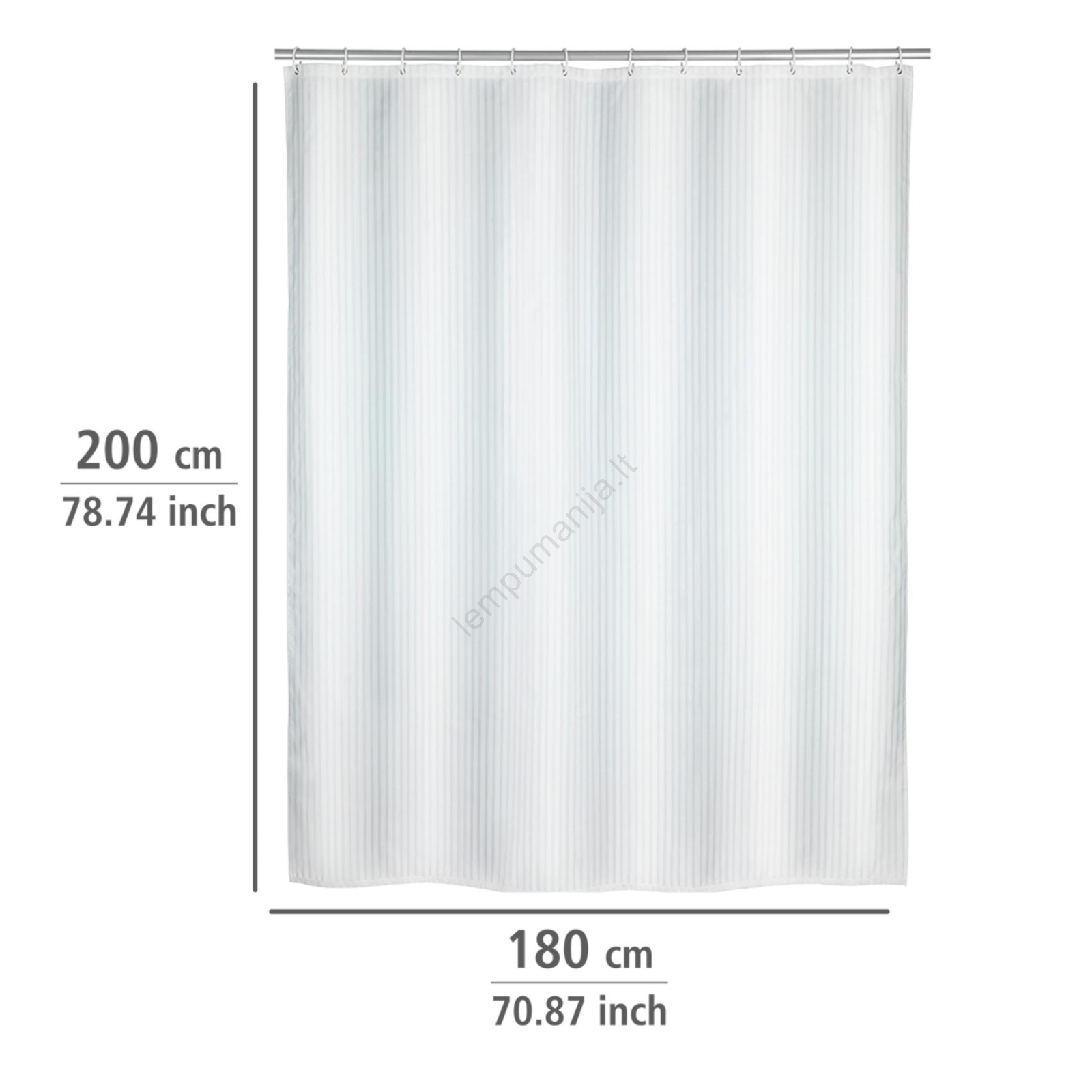 • Textilinė dušo užuolaida su specialia apsauga nuo pelėsių.
