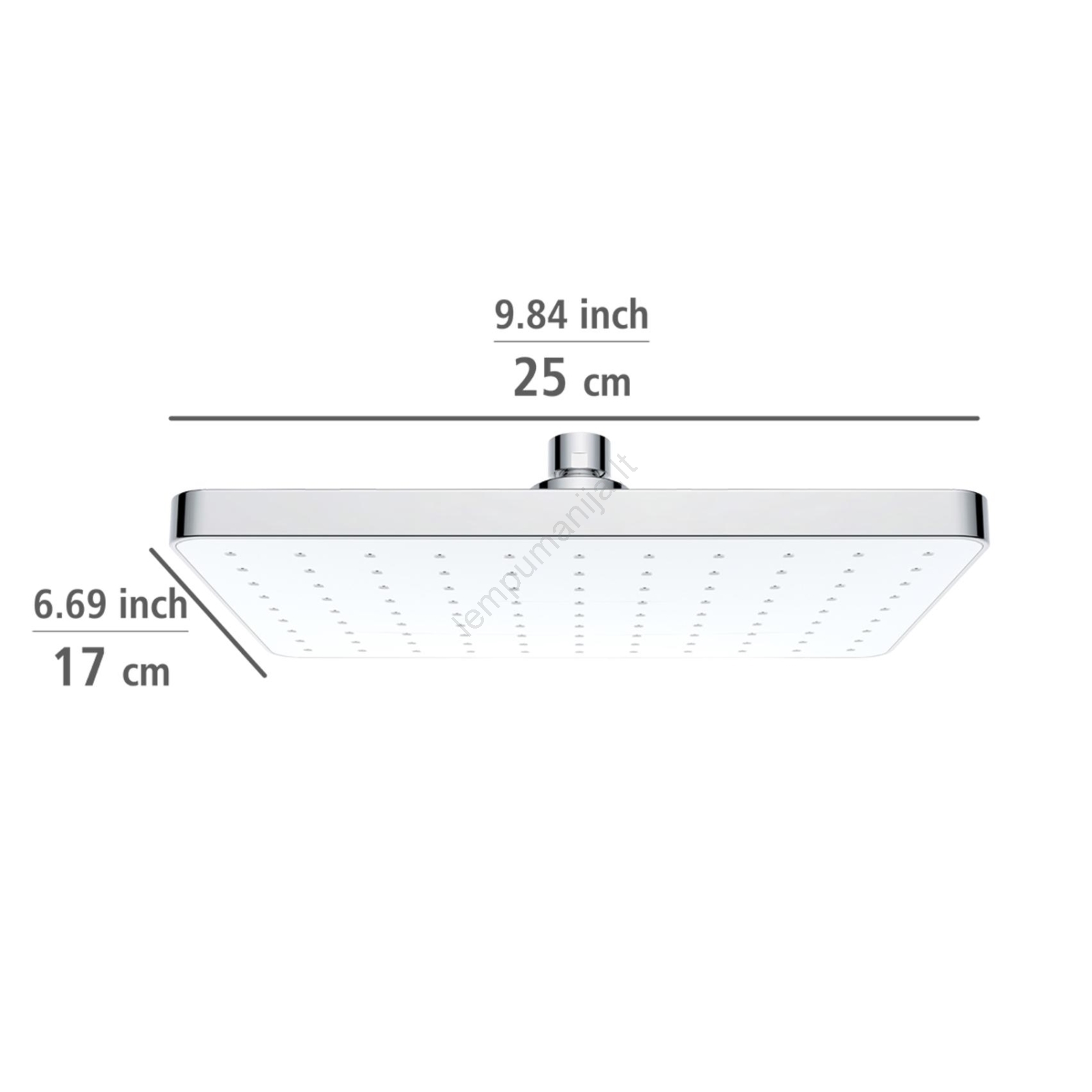 • Matmenys 25 × 17 cm užtikrina plačią ir tolygią vandens srovę.