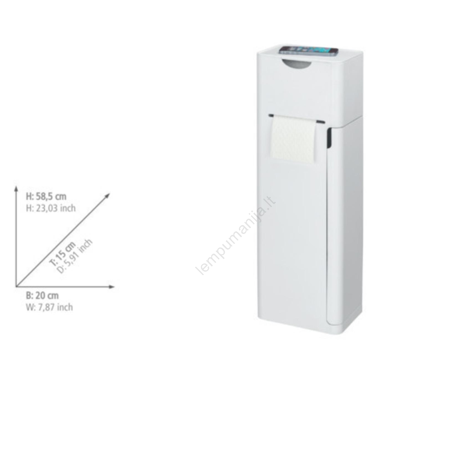 • Kompaktiški matmenys: 20 × 58,5 × 15 cm.