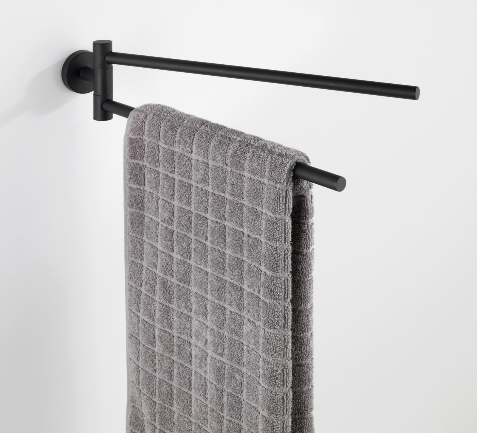 • Elegantiškas rankšluosčių laikiklis su dviem pasukamaisiais strypais, taupant vietą.