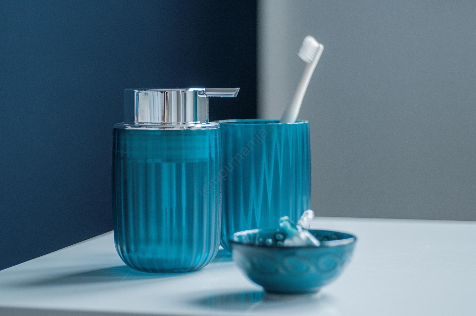 • Galima derinti su muilo dozatoriumi, kosmetikos krepšeliu ir tualeto šepetėliu iš tos pačios serijos.