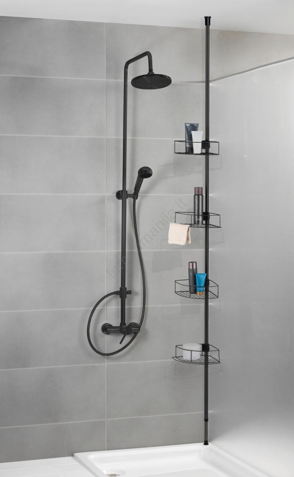 • Teleskopinė kampinė lentyna su 4 krepšeliais tvarkingam vonios reikmenų laikymui.